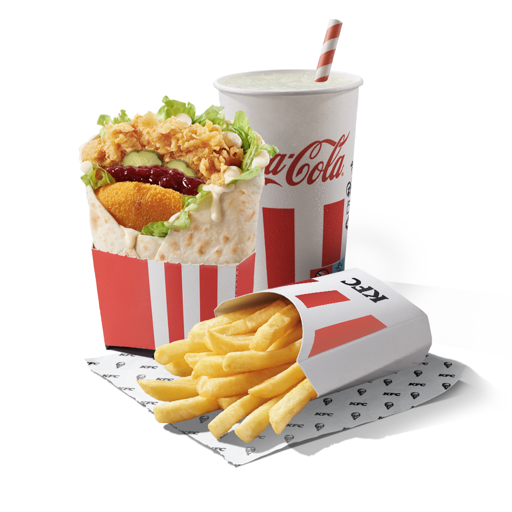 Served on a warm tortilla, this flavor adventure combines juicy chicken fillet, French Reblochon Cheese Patty, cranberry jam, crispy onions, pickles, iceberg lettuce and mayonnaise. Meal includes fries and soft drink.